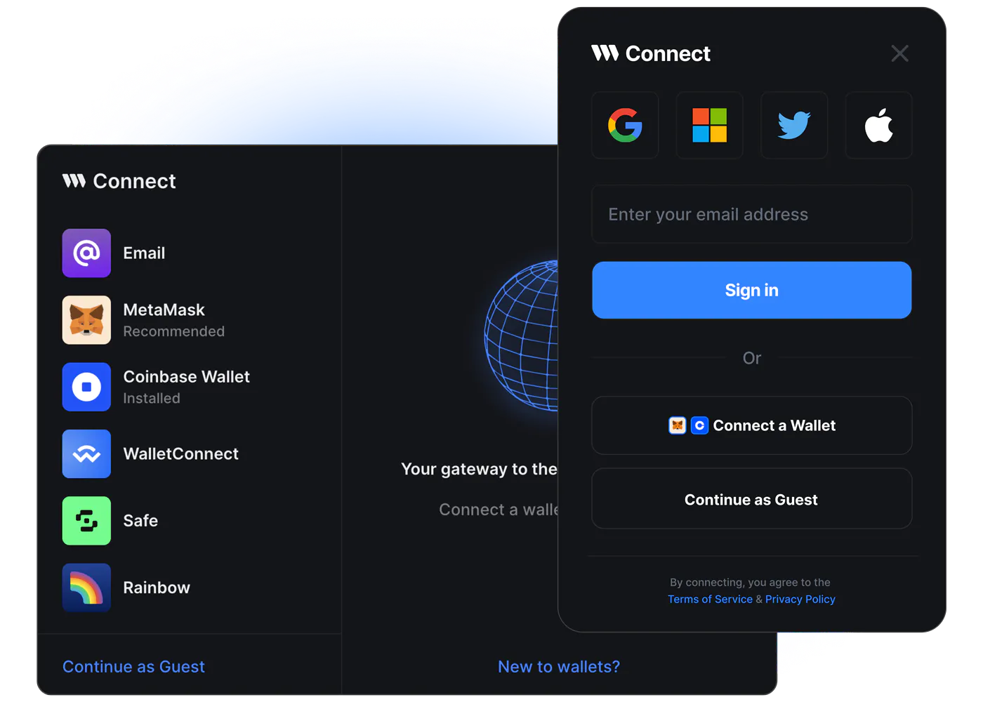 ConnectWallet component's Modal has two size variants - "wide" and "compact"