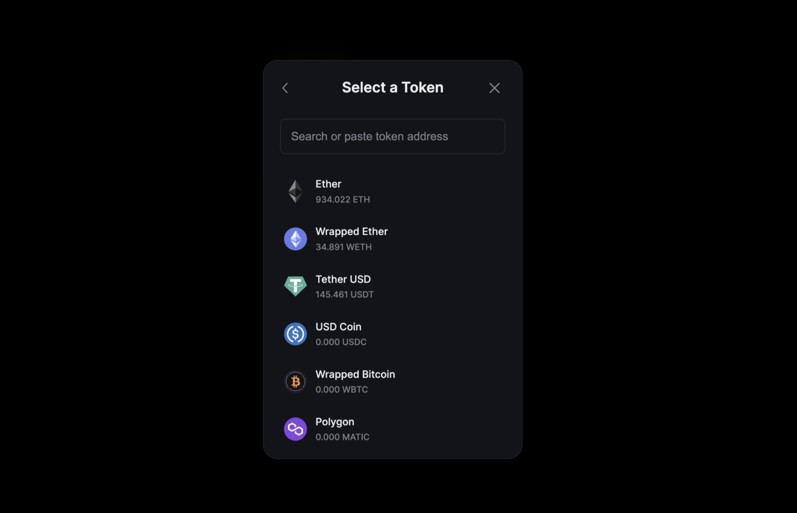 By default, The "Send Funds" screen shows a few popular tokens for default chains and the native token. For other chains it only shows the native token.